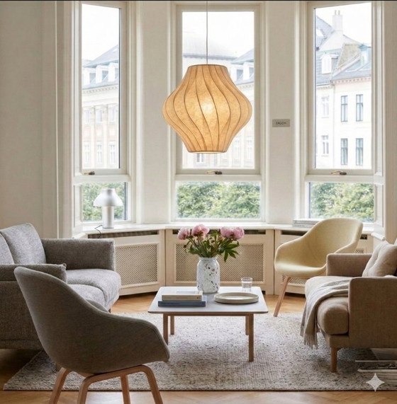 The Nelson Pear Crisscross Bubble Pendant Small Off White HAY pendant lamp stands out for its iconic pear-shaped design and its light and elegant aesthetic. Made with a steel frame and a translucent off-white shade, it projects a soft, warm light. Its crisscross finish adds texture and a subtle graphic detail, ideal for dining rooms, bedrooms, or corners with a contemporary style.