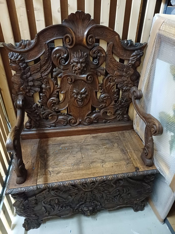 ConditionGoodColorsBrownMaterialWoodNumber of items1Height110 cmWidth140 cmDepth65 cmSeat height55 cmSigns of usageScratches