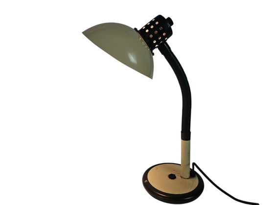 This lamp by French NF Luminaires Electricité dates from the 1970s. The light is adjustable to any position through the flexible neck. Lighting has been tested and works properly.