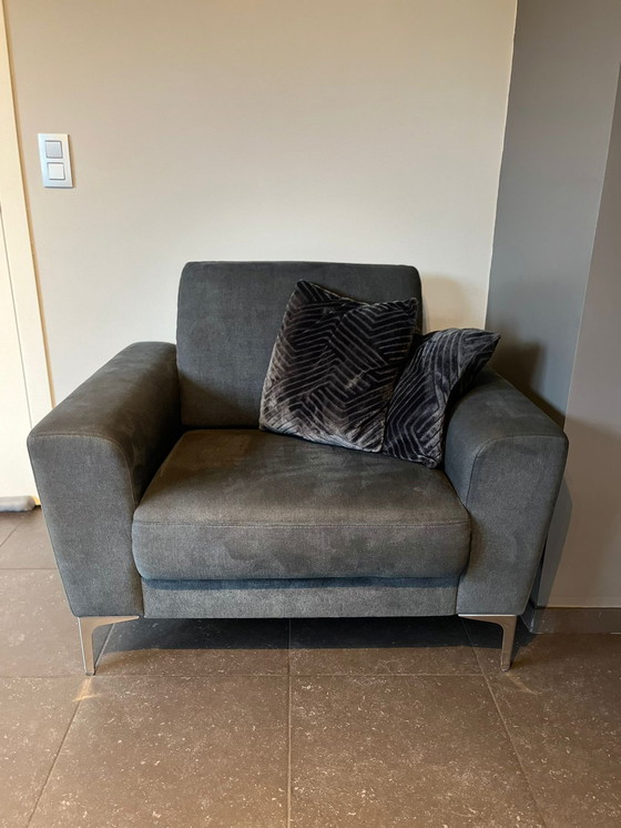 Beautiful dark gray single sofa for sale. Excellent condition. Selling due to a change of decor. Width: 111cm, height: 86cm, depth: 89cm, seat height: 45cm, seat depth: 55cm. Pickup in Temse.