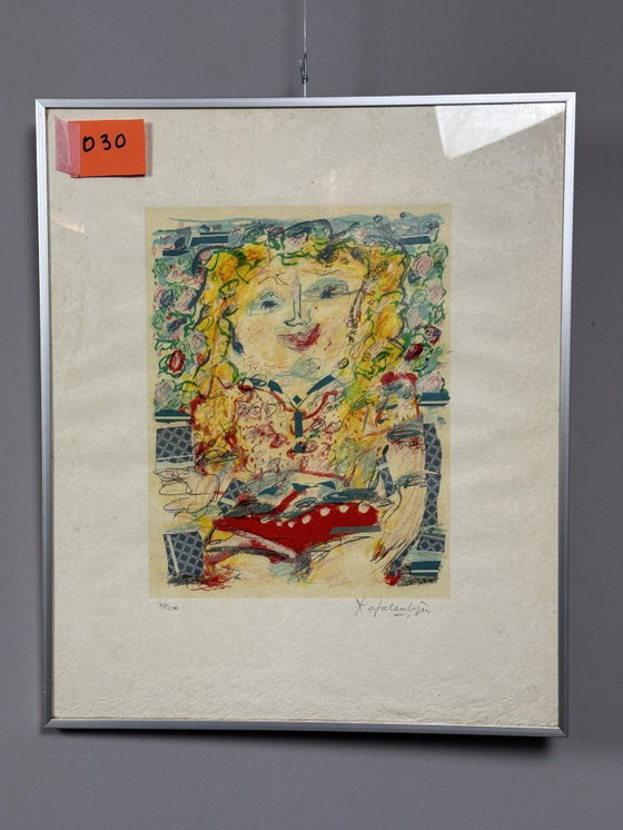 Nina on Holiday by Kees Salentijn, Screenprint (Silkscreen) on paper nr. 277/500. The Netherlands, 1970s. This screenprint by Dutch artist Kees Salentijn is part of the artist’s graphic oeuvre from the 1970s, a period in which he explored figurative imagery through experimental printmaking techniques. As Salentijn is a Dutch artist, the original title is appropriately presented here as 'Nina op Vakantie'.
