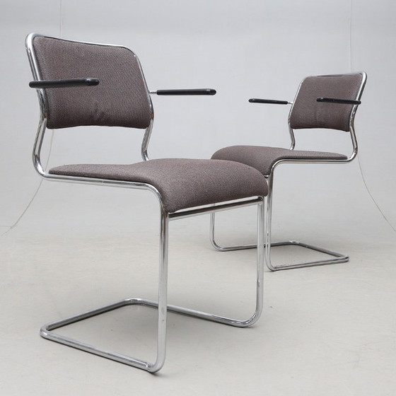 Step into the world of Swedish modernism with this exquisite pair of NKR Tranas steel tube chairs. Crafted in the second half of the 20th century, these chairs embody the sleek, minimalist design that defines the era. Perfect for adding a touch of Scandinavian elegance to any space, they offer both style and comfort with their ergonomic design and sturdy construction.