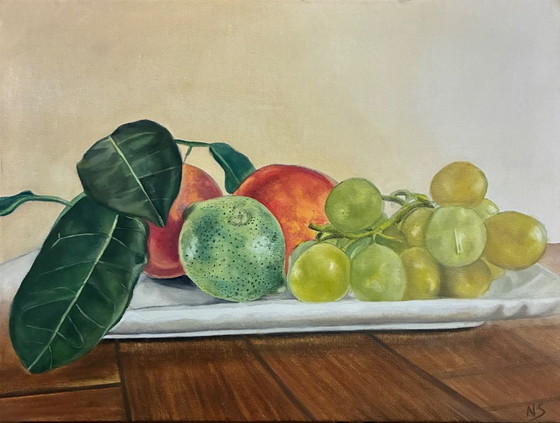 Immerse yourself in the timeless beauty of still life with "Still Life 1" by Noemi Sapuppo. This painting masterfully captures the freshness and vitality of fruit, arranged on an elegant white plate. Rendered on canvas, this piece expresses striking realism, with meticulous detail that lends depth and life to the composition. The vibrant colors of green, red, and yellow blend harmoniously, creating a visual contrast that draws attention and enriches any setting. The balanced composition and color palette make this painting a refined addition to homes and exhibition spaces. Be inspired by the simplicity and elegance of this artwork, perfect for those who appreciate classic design and artistic quality. Contact us for more information or to add this masterpiece to your collection.
