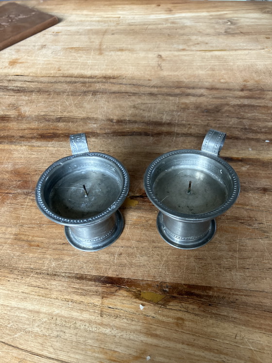 Discover the timeless elegance of these Norwegian pewter candlesticks, a beautiful set crafted by Tinn-Trykk. Handmade with meticulous attention to detail, these vintage Scandinavian design pieces bring a touch of Nordic charm to any setting.