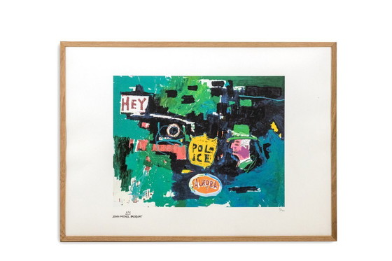 Color silkscreen print in its original light oak frame.