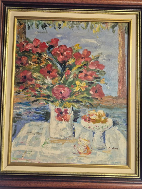 Vintage decorative painting signed Graham. Dimensions: 40x50 cm Original frame In good condition; the frame shows some wear but is original.