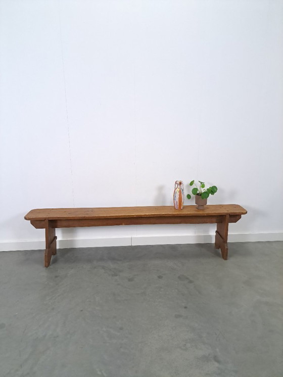 ConditionGoodColorsBrownMaterialWoodNumber of items1Height45 cmWidth192 cmDepth29 cmSeat height45 cmSigns of usageDents, Discoloring, Holes, Scratches