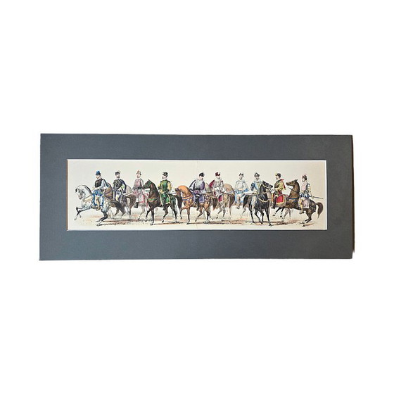 Old hand-colored lithograph by Pieter W. M. Trap, dating from the late 19th century. Decorative lithograph depicting a historical reenactment, specifically a masquerade of Leiden students commemorating the entry of the Earl of Leicester in 1586. The lithograph is based on a work by Gerardus Johannes Bos and published by P.W.M. Trap in the late 19th century. Complete with passe-partout and in neat condition.