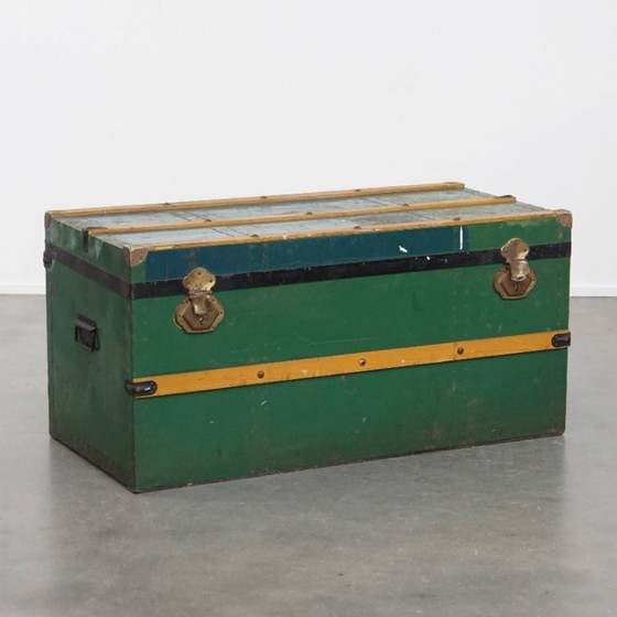 This great original antique travel chest / coffee table from the early 1900s is a true eye-catcher in almost any interior. It is beautiful as a decorative piece, but can also serve as an excellent coffee table. The chest offers ample storage space and still has its original interior lining, which makes it extra special. Over the years it has sustained signs of use, which adds to its characterful appearance. Structurally, it is in good and immediately usable condition. Where do you put him?