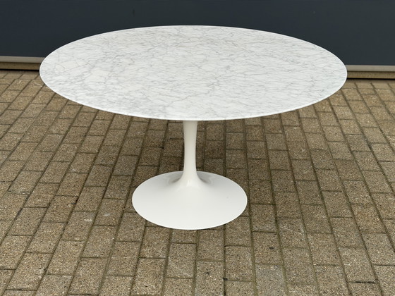 The Knoll Studio Saarinen Tulip Dining Table is a classic design by Eero Saarinen. In 1957, Saarinen created a fantastic series of tables and chairs that would become known as the Tulip tables and chairs. A defining feature of this series is the base, consisting of a single leg that flows downward into a rounded foot. Saarinen wanted to put an end to the clutter of table and chair legs. In this table series, the foot is not only beautiful but also very practical. This allows the chairs and legs to move freely around and under the table.