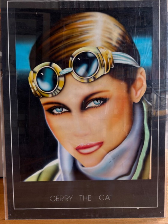 It is an airbrush artwork typical of Gerry the Cat (Ger Doornink). It is the original design for the cover of Avantgarde magazine #13 from 1980.