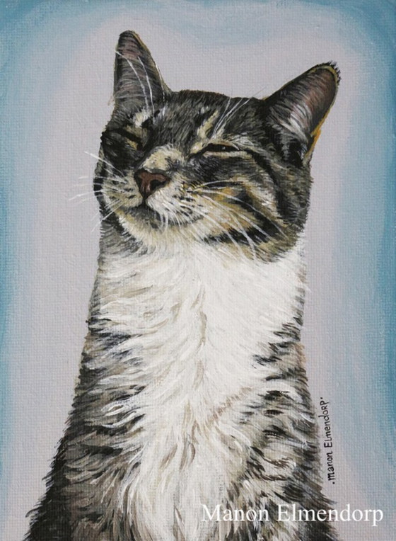 The painting is painted with great detail in a realistic style. Many hours of work and love went into this painting.