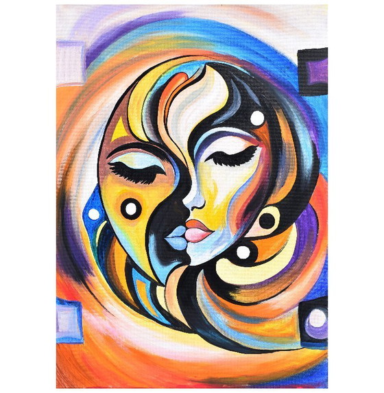 A harmonious interpretation of duality and light. This hand-painted original combines warm sun tones with cool shadows, creating a calming atmosphere. Perfect for modern living rooms or bedrooms.