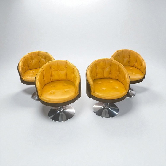 Immerse yourself in the captivating world of the 70s with these original cocktail chairs, perfectly embodying Space Age and Pop Art design. These swivel chairs are not only eye-catching but also offer exceptional comfort and functionality.