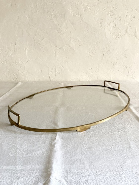 Superb and large oval glass and brass serving tray dating from the late 19th/early 20th century.