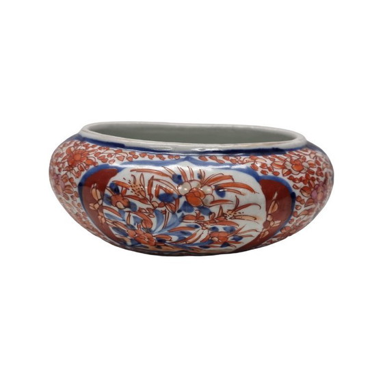 Oval Imari porcelain flower pot, from the 20th century. Nice small decorative oval Imari porcelain flower pot with hand painted decor. Unmarked and in good condition with no chips or hairlines.