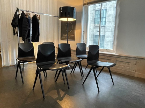 The iconic S22 school chairs by Galvanitas, designed by Elmar Flototto, were among the most beloved industrial chairs of their time. This set of six combines a modern, fashionable look with a robust design – ideal for studios, fashion boutiques, concept stores, or stylish interiors.