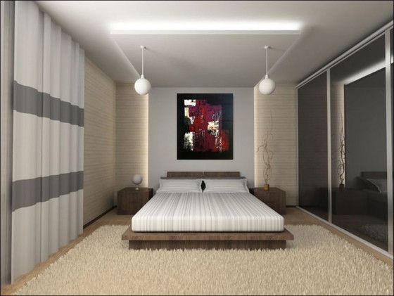 Bring a touch of modern art into your home with this striking abstract painting. The rich red tones, combined with contrasting black and white, create a dynamic and intriguing image that brings any room to life. Perfect for the living room or bedroom, this artwork adds a touch of sophistication and style to your interior. Be inspired by the bold colors and unique textures that tell a story without words. This painting is not only a visual treat but also a conversation starter for every guest. Don't miss the chance to transform your space with this beautiful piece!