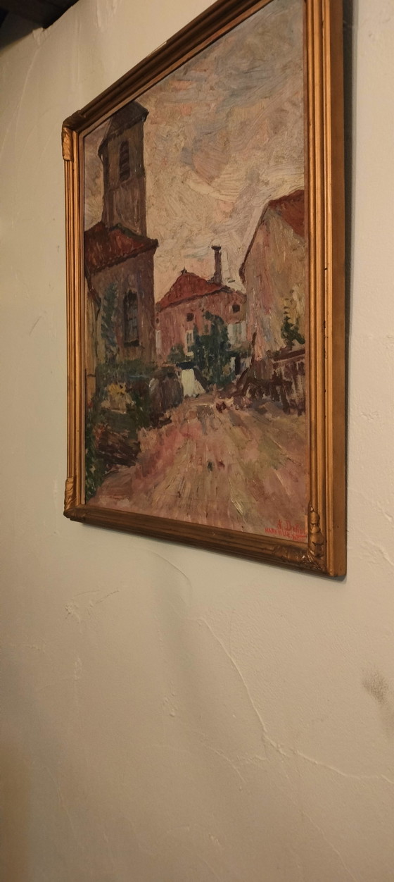 Experience the timeless beauty of the French countryside with this masterpiece by Charles Dehoy. This painting, depicting a village in Hareville, France, captures the essence of Impressionist art with its warm earth tones and subtle brushstrokes.