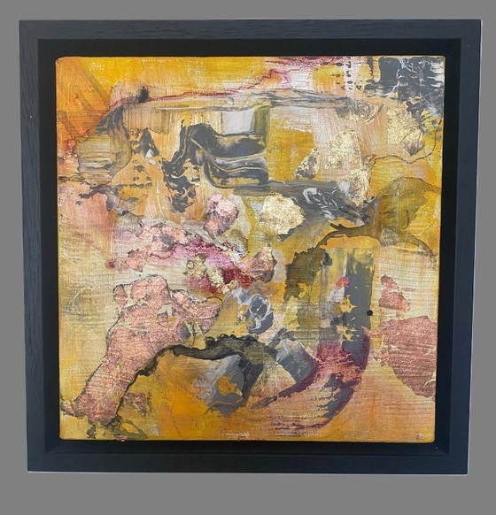 Discover this unique mixed media painting that brings an explosion of color and texture to your interior. The vibrant shades of yellow and gold are beautifully complemented by subtle gray and pink accents, creating a dynamic and intriguing work of art.