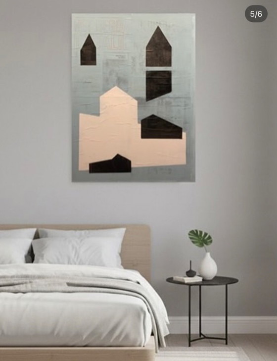 Landscape 55 x 75. Acrylic on canvas. Acrylic paint on old Panorama magazines.