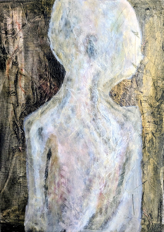 - The painting displays a subtle blend of grey, brown, and white tones, which together create a mystical and contemplative atmosphere.