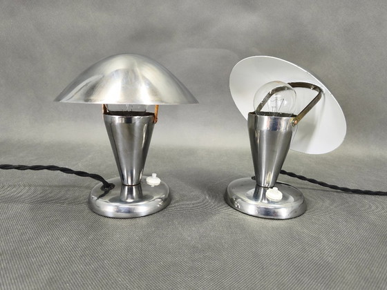 Elegant pair of Bauhaus table lamps from 1930s Czechoslovakia.