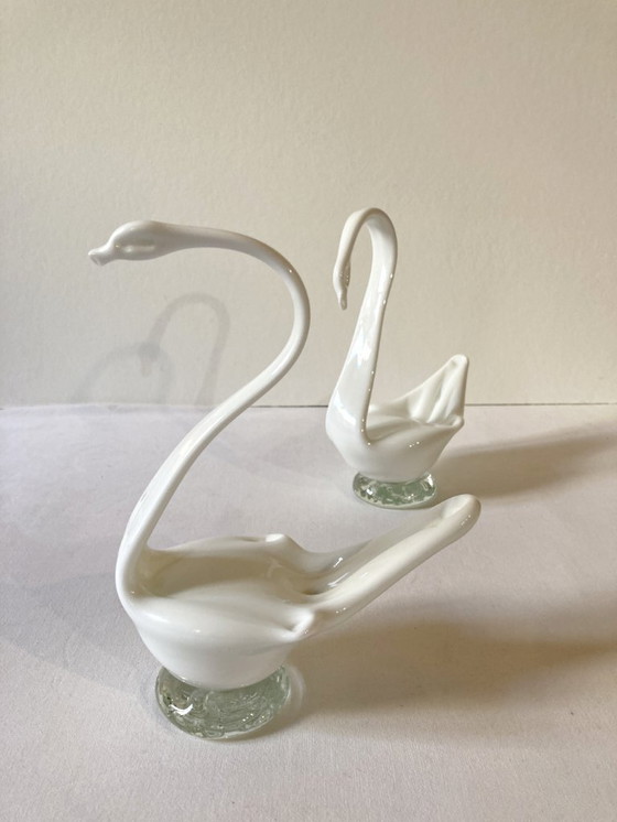 Fluid lines and charming style define this elegant pair of decorative swans.