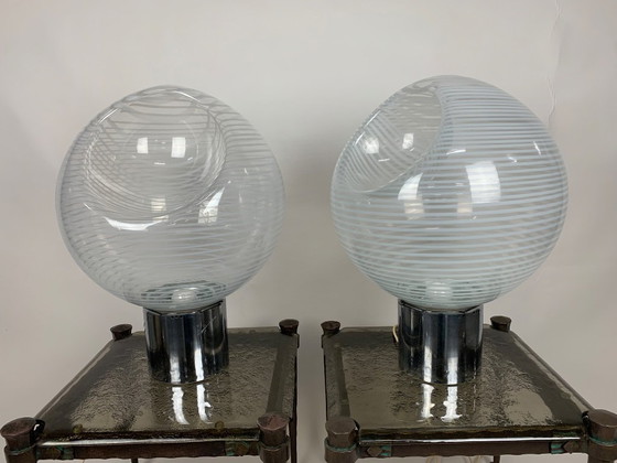 Illuminate your space with the timeless elegance of this glass table lamp, designed by the renowned Gino Vistosi for Vistosi in the 1960s. This exquisite piece embodies the essence of Mid Century Modern design, featuring a captivating transparent glass globe that diffuses light beautifully, creating a warm and inviting ambiance. Crafted from high-quality glass and metal, this lamp showcases the exceptional craftsmanship and innovative design synonymous with Vistosi. The sleek silver base complements the transparent glass, adding a touch of sophistication to any room. Perfect for both contemporary and classic interiors, this lamp is a versatile addition to your decor. Enhance your living space with this iconic piece, and let its gentle glow transform your home.