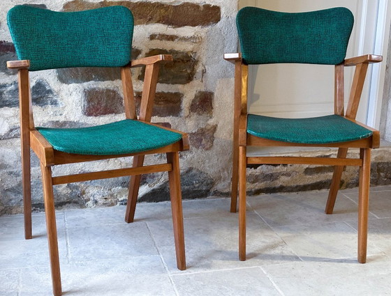 Two superb bridge chairs with the typical retro charm of the 1950s/60s. Elegant lines, a comfortable seat, and that certain something that instantly adds character to a room.
