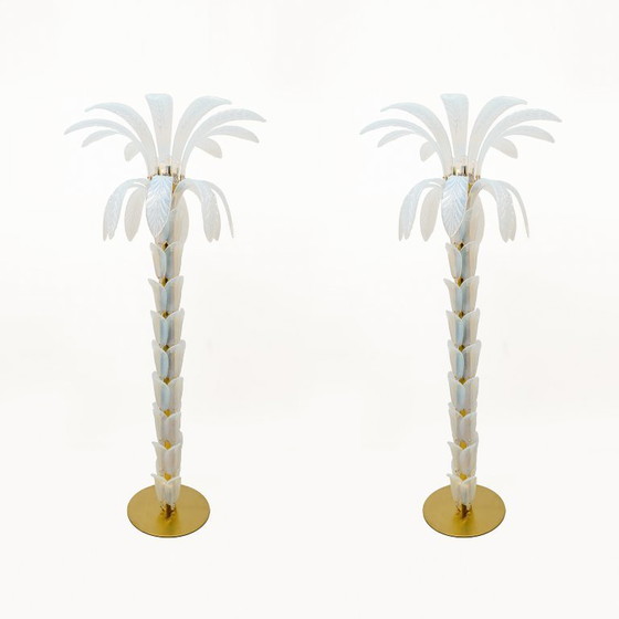 Pair of palm-shaped floor lamps in iridescent Murano glass.