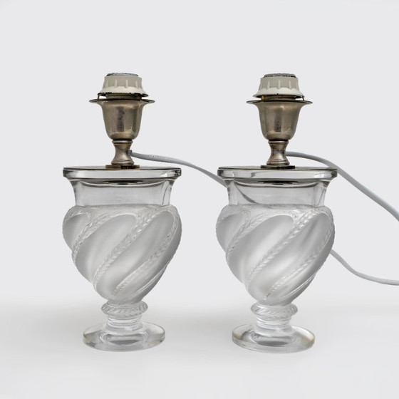 Pair of two vases on pedestal, "Ermenonville" model, signed Marc Lalique, 1960s.