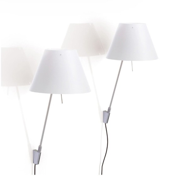 Two iconic Italian wall lights, model D13api Costanzina, published by Luceplan, and designed by Paolo Rizzatto in 1986.