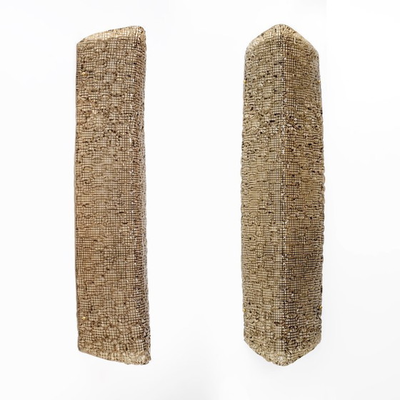 An elegant pair of wall sconces crafted from authentic Murano bubble glass, featuring a richly textured surface with visible air bubbles that create depth and dynamic light reflections.