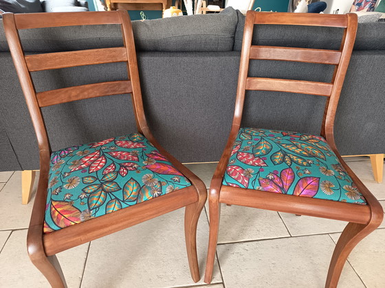 These antique chairs have undergone a complete restoration in the spirit of traditional upholstery. The wooden frame has been carefully repaired, while the seat has been completely reupholstered with new high-resilience foam to provide lasting comfort.