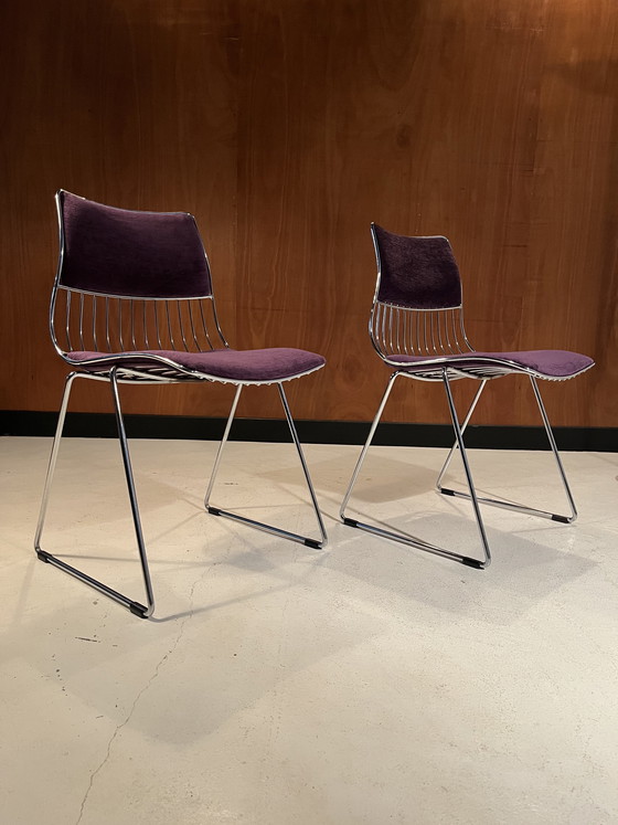 Retro space age pop design, office chair, dining room chair, film shoot, advertising decor, purple