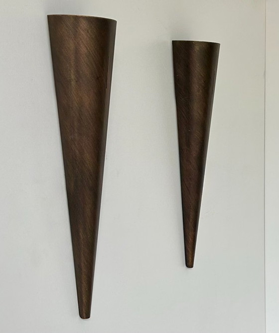 Pair of sconces in brown patinated metal, produced in France in the 1970s.