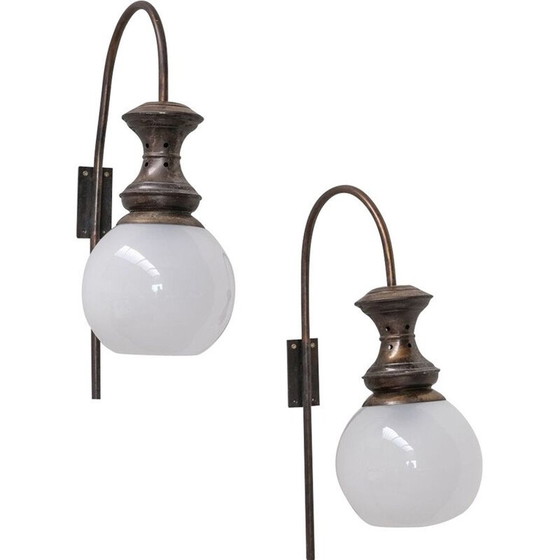 A pair of mid-century wall lights, in the manner of Caccia Dominioni.
