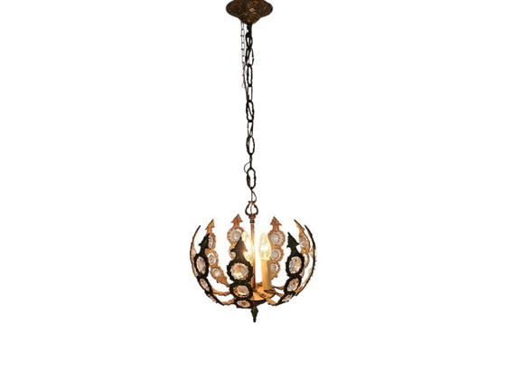 Superlamp - wat een uitstaling heeft deze hanglamp! Zwaar uitgevoerd en in een hele goede staat - luxueus uitgevoerd en orgineel - lamp is volledig getest en werkt naar behoren - de drie lampjes zijn inclusief.Retroxl kan nimmer aansprakelijk worden gesteld voor schade ontstaan door onjuist gebruik.