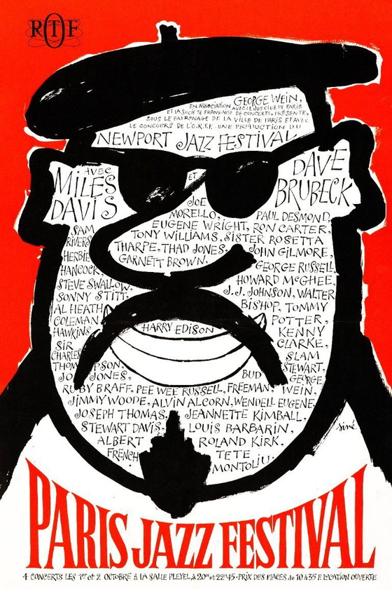 A restored reproduction of the concert poster for the Newport Jazz Festival in Paris, France. The Newport Jazz Festival's reputation was so strong that it was exported to foreign countries.
