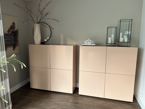 Enhance your living space with the elegant and contemporary Pastoe cabinets in a soft blossom hue. These sleek cabinets offer a minimalist design that seamlessly blends with modern interiors, providing both style and functionality.