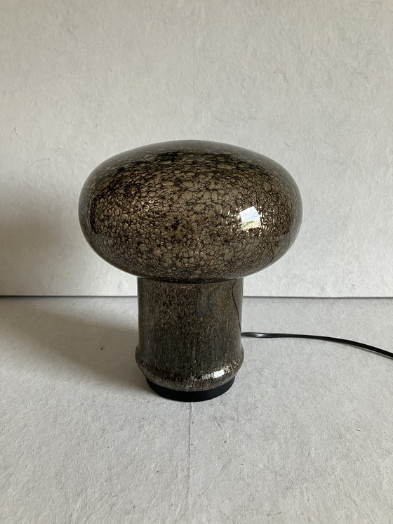 Very rare designer vintage black bubble glass mushroom table lamp by the famous German design brand Peil & Putzler. You certainly don't see this lamp very often and is quite rare nowadays. The lamp has a very nice play light effect due to the black bubble glass! Produced in Germany in the 60s/70s. Is free of chips and/or cracks. The white versions go for hundreds of euros online!