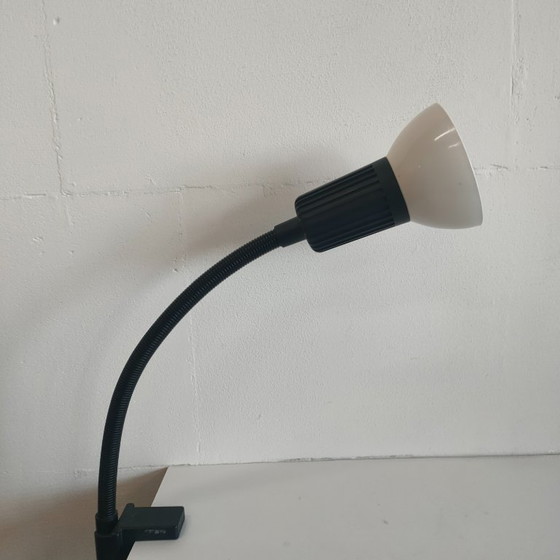 This Philips desk lamp is an original Philips Infraphil De Luxe Vario HP2001, which is now used as a "regular" desk lamp. This heat lamp came onto the market in the 60s-70s. Produced in West Germany. This design was the first heat lamp with a flexible gooseneck.