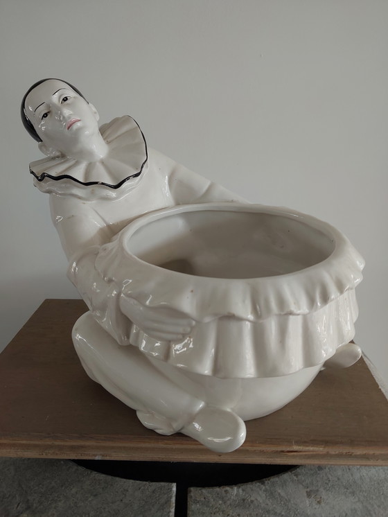 This unique Pierrot vase is a real eye-catcher for your interior! With its playful and artistic look, it brings a touch of Art Deco charm to any room. Crafted from high-quality ceramic, the vase features a beautiful white finish with subtle black accents that highlight the details of the Pierrot figure. Perfect for displaying flowers or as a standalone piece of art.