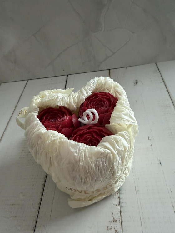 Give the gift of a symbol of enduring love with this handmade bouquet of deep red rose candles. Wrapped in delicate crepe paper, these candles make the perfect centerpiece for a romantic dinner or a relaxing moment for yourself.