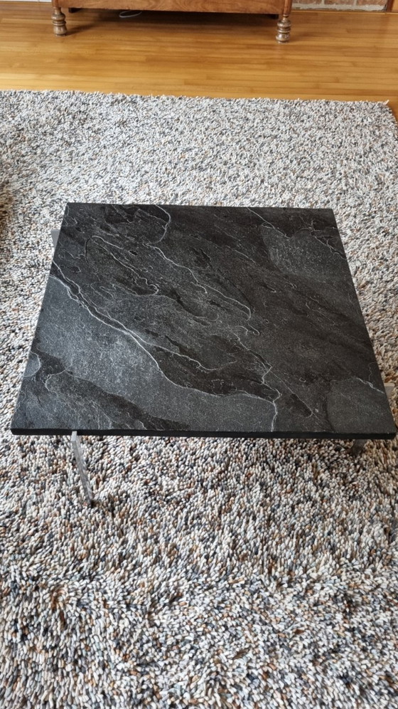 The PK61 coffee table, designed by the iconic Poul Kjærholm and produced by Ejvind Kold Christensen, is a Danish masterpiece of minimalist design. This table combines a robust 80 x 80 cm slate top with a satin chrome-plated steel frame, creating a timeless look that perfectly complements a modern interior.