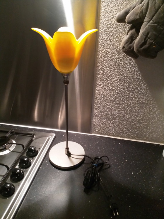 This Pols Potten table lamp adds a touch of modern design to any room. With its striking yellow glass shade and sleek metal base, it's a real eye-catcher. Perfect for illuminating a desk or side table.