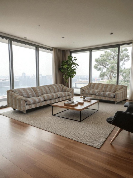 Set of 2 Poltrona Frau sofas – original upholstery – 295 x 92 x 77 cm and 200 x 92 x 77 cm. An elegant pair of authentic Poltrona Frau sofas with original fabric upholstery. Simple and refined lines, perfect for modern or classic settings seeking comfort and timeless design. Dimensions: – Large sofa: 295 x 92 x 77 cm – Medium sofa: 200 x 92 x 77 cm. The sofas are in good overall condition, with some signs of wear consistent with age and use, confirming their authenticity. Please carefully examine the photos, which show all the details and condition of the sofa. Shipping will be tracked, including secure packaging; any duties and customs fees will be paid by the buyer. **Due to the size, collection is available; however, low-cost shipping worldwide is available upon request.