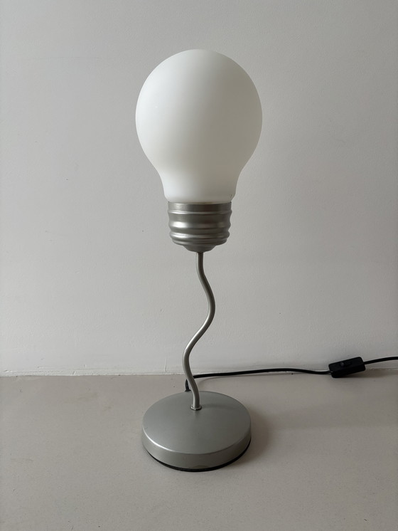 Illuminate your space with a touch of retro flair with this Pop Art bulb lamp, a quintessential piece from the 1980s Memphis style movement. Its playful design, featuring a whimsical twist on the classic light bulb shape, adds a unique character to any room.