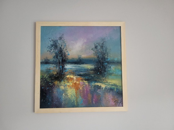 Robert Popczyk is a Polish artist. Oil painting on a board,signed and framed. Size 40cm/40cm . His paintings are dreamy and full of melancholy. Certificate attached to the back of the painting.